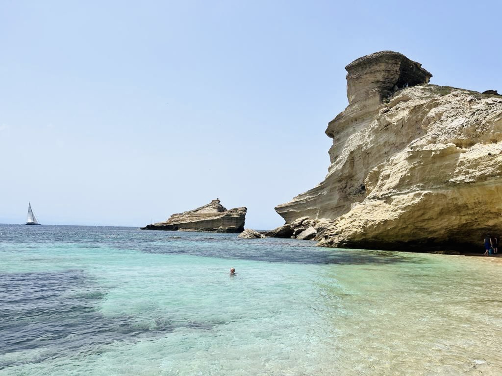 A Bonifacio, on trouve plusieurs plages mais j’ai particulièrement retenue la plage de Saint Antoine, surplombée par l’imposant phare de Pertusato son accès se fait par une petite randonnée d’une vingtaine de minutes, le décor des rochers qui l’entourent est superbe et on apprécie le côté sauvage du site.